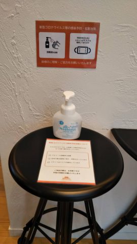 お客様にもマスクの着用と消毒をお願いしています。