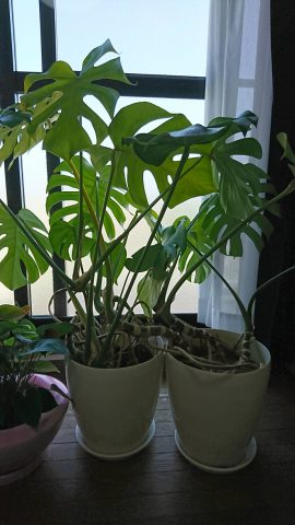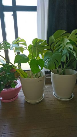 何かすることないかなと思っていたら、ちょうど目についた観葉植物(モンステラ)お手入れをすることに。